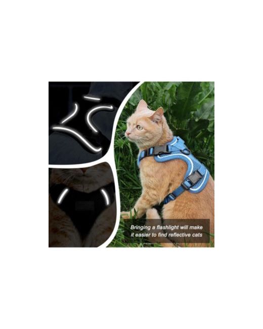 Escape Proof Cat Harness Leash Adjustable Breathable Comfortable Vest Easy Wear Outdoor Travel Car Seat Belt Safe da Donna di colore Blu