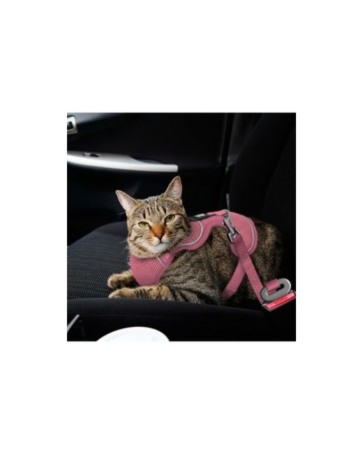 Suitable for cats of different body types, this cat car harness requires measuring your cat s chest, neck, and weight to ensure a proper fit. Equipped with an adaptable car seat belt insert, it lets your curious cat explore freely while driving without disturbing you or risking window jumping. The upgraded design features four adjustable buckles that increase head and chest adaptability, allowing you to change the holding fulcrum and tighten areas to prevent escape. Made with breathable air mesh, this comfortable harness snugly fits your feline friend while keeping them cool it s soft, lightweight, and ideal for daily walks, jogging, training, or outdoor activities. It also works well as a comfort harness for trips to unfamiliar places like the vet or groomer. The buckle design lets you adjust head and chest circumference to prevent escape and avoid suffocation. Available sizes: S (7-12lb), Xs (4-6lb), M (13-18lb). Available colors: Black, Blue, Orange, Pink, Purple
