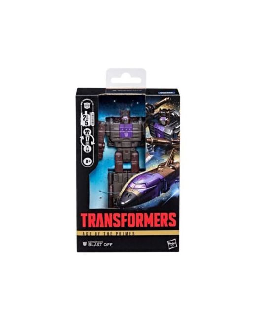 Collect all the Combaticons and build Bruticus Experience the epic universe of Transformers robots with the Transformers Age of the Primes Combaticon Blast Off toy The 5 12-inch 14 cm Deluxe Class figure converts from robot action figure to space shuttle mode in 17 steps and can be combined with additional Combaticon figures each sold separately, subject to availability to make a Bruticus figure. With intricate poseability and attachable accessories, the Combaticon Blast Off action figure makes an awesome addition to any collection. Transformers Age of the Primes opens up the world of the Primes, the very first bots in Transformers mythology, a pantheon of Thirteen beings, each with a unique ability and personality. Every battle, every bot, and every power in the Transformers universe can be traced back to one of The Thirteen. Collect and combine different characters to create your ideal Age of the Primes lineup.