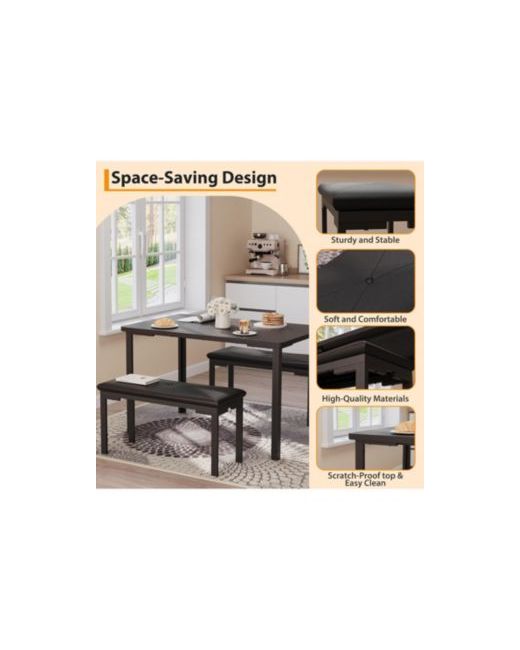43.3 Inch Dining Table Set for 4 Rectangle Kitchen with 2 Upholstered Soft Benches Frame 3 Piece Room Space-Saving