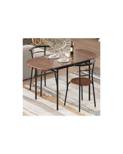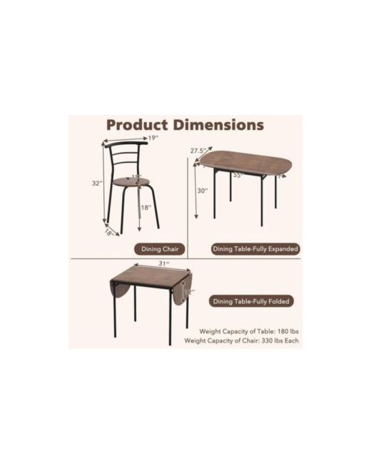 Apartment living calls for adaptable furniture, and this three-piece dining set delivers with a drop-leaf table that transforms between multiple configurations. Fold both leaves down for a slim console profile, raise one for an intimate setting, or open both for a full 55 x 27.5 in dining surface. Two ergonomic chairs slide under the table when not in use, and the heavy-duty metal frame ensures lasting stability throughout daily life.