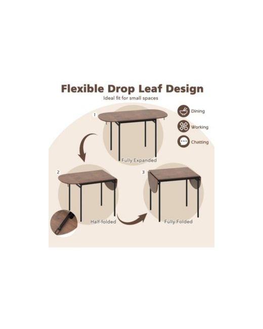 3-Piece Drop Leaf Dining Set with Adjustable Table and 2 Metal Chairs di colore Marrone