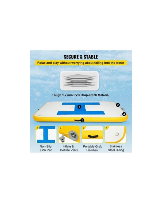 Turn open water into a relaxing hangout with this inflatable platform built for swimming, sunbathing, stretching, or tying up beside a boat. The sturdy drop-stitch Pvc design pairs with a cushioned Eva traction surface for steady footing, while quick inflation, easy transport, and room for 2 to 4 people make every outing simpler and more fun.