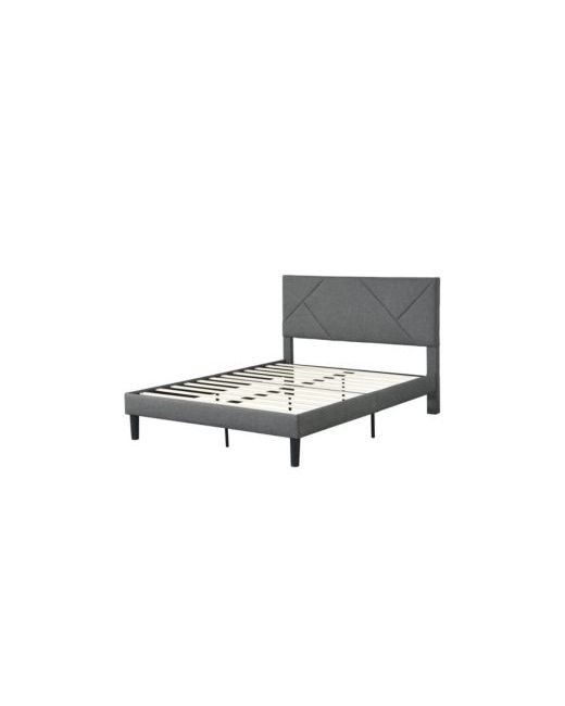 Upholstered Platform Bed Frame with Headboard Strong Wood Slat Support di colore Grigio
