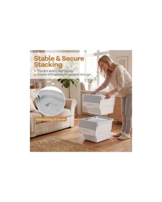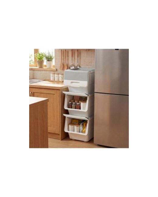 3 Pieces Storage Bins on Wheels Stackable Plastic Boxes with Stay-Open Lid. di colore Grigio