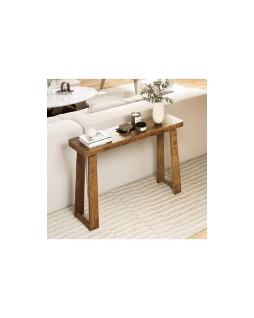 43 Solid Rubber Wood Narrow Console Table with 2 Thick Tabletop di colore Marrone