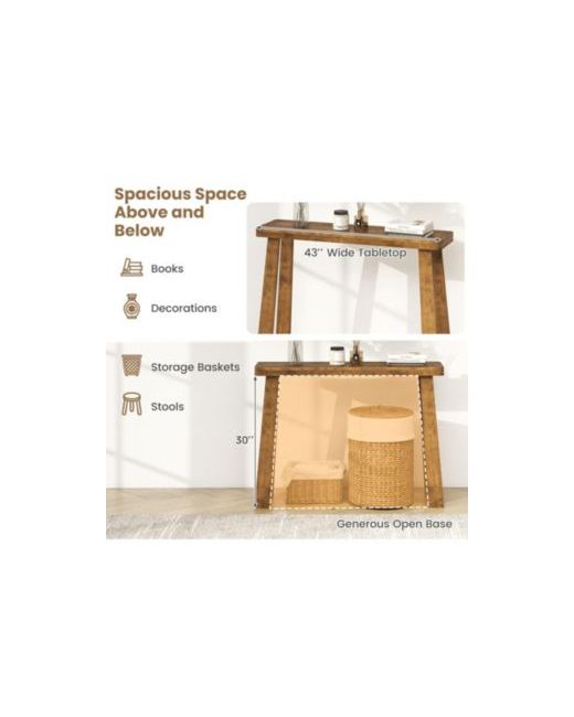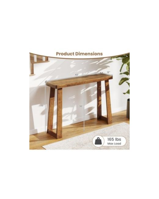 Crafted entirely from premium solid rubber wood, this 43-inch console table brings natural warmth and refined simplicity to any entryway or hallway. The 2-inch thick tabletop provides a substantial surface that feels as sturdy as it looks, while the minimalist open-base design with 30-inch clearance keeps sightlines open and cleaning effortless. A 165-lb weight capacity handles heavy lamps, art pieces, and decorative collections with ease.