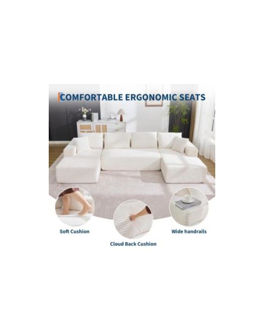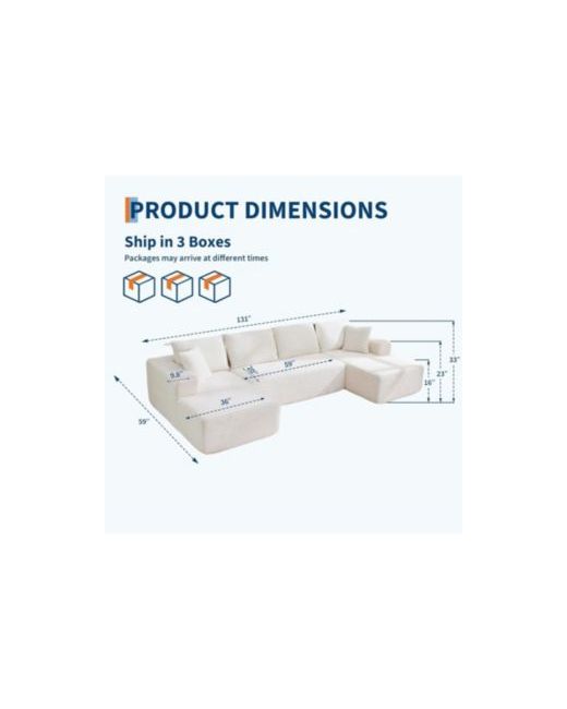 130x22 U-Shaped Modular Sectional Sofa Boneless Cloud Couch with 2 Chaise and Pillows di colore Beige