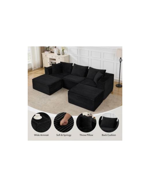 107x22 Cloud Sectional Sofa U-Shaped Modular Couch with Chaise Memory Foam di colore Nero