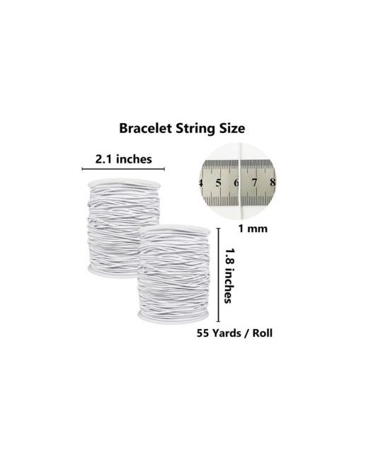 Versatile elastic cord for bracelets, beading, Diy crafts, drawstring bags, pony bead jewelry, hair ties, and party hat straps. Excellent elasticity stretches easily within its limit and returns to original length without deformation. Simple to cut and tie, flexible, and easy to knot securely. Made from durable nylon polyester fabric and braided rubber for long-lasting elasticity, strength, and flexibility. Includes 2 rolls of white elastic cord, each 1mm thick and 55 yards long.