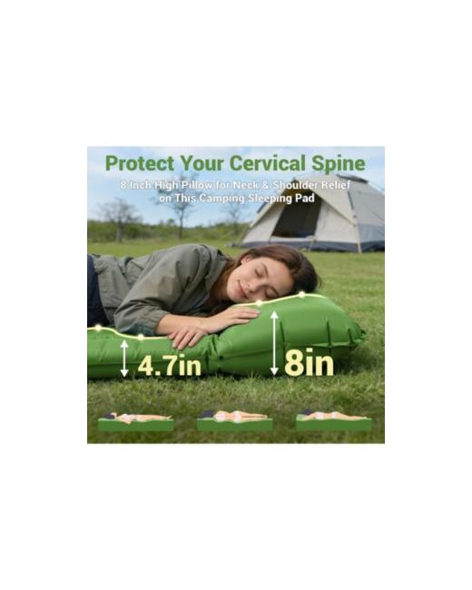 Extra High Pillow Support: Designed for campers who care about how they feel the next morning, this camping mat combines a 4.7-inch mattress with an 8-inch built-in pillow, placing your head, neck, and shoulders in a more comfortable support position. Unlike ordinary camping air mattresses, there's no need to stuff clothes under your head or wake up stiff and sore. Enjoy a more relaxing, bed-like experience. Thickened Cushion, No Bottoming Out: When the weather is cold or the ground is uneven, comfort determines whether you just get through the night or truly enjoy your journey. This thickened sleeping pad provides 4.7 inches of supportive air cushioning to help relieve pressure on your hips, back, and shoulders, making this camping mat especially suitable for side and back sleepers, as well as anyone looking to upgrade from a thin flat mat. More Durable Fabric.
