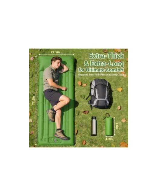 Camping Sleeping Pad Inflatable Mat Built Foot Pump Outdoor Recreation Gear di colore Verde