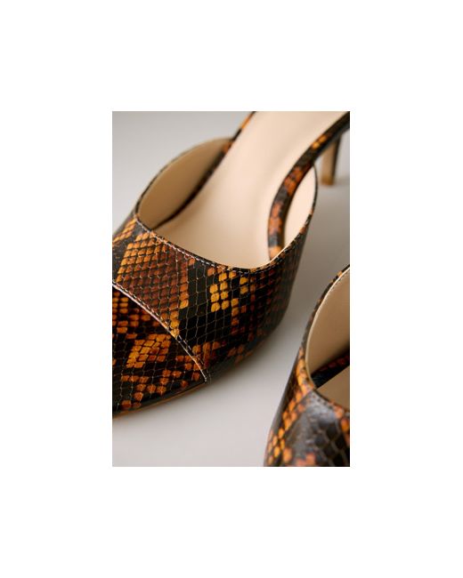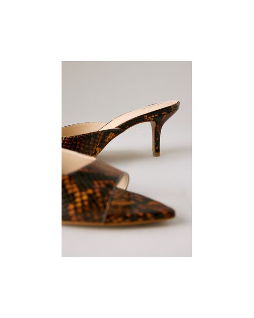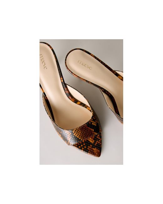 By Maeve Leather, Satin upper PU lining, sock Rubber outsole Slip-on styling Pointed, open toe Imported Point Toe Mule Heels by Maeve, Women's Size: 36, Leather/Rubber/Satin at Anthropologie