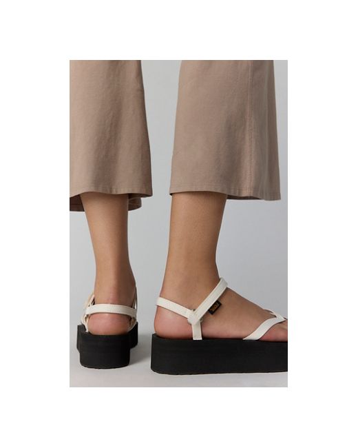 A sleeker version of the original sport sandals, featuring water-friendly strappy thong uppers, a comfortable footbed, and grippy rubber flatform soles for free roaming. **Features:** Water-friendly, velcro ankle strap; logo tab, thong uppers, cushy footbed, rubber flatform soles **Why We ❤ It:** A summer staple you will reach for year after year. Teva Flatform Slim Sandals at Free People in Coconut Milk/Black, Size: US 6