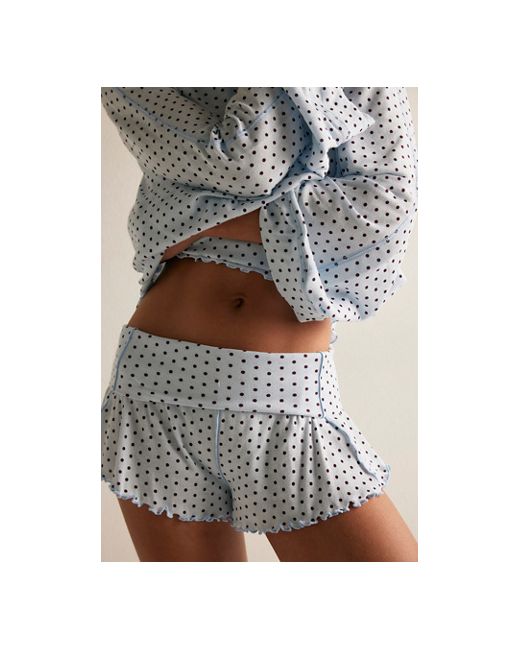 Buttery soft and so sweet, these Intimately shorties are love at first touch, featuring an ultra high-rise silhouette with a wide elastic waistband, exposed seam details, and lettuce trim for a frilly touch to this style you'll be wearing everywhere. * Stretchy cotton fabrication * Pull-on shorties * Ultra high-rise waist Vibe Check Shorties by Intimately at Free People in French Blue Combo, Size: Medium