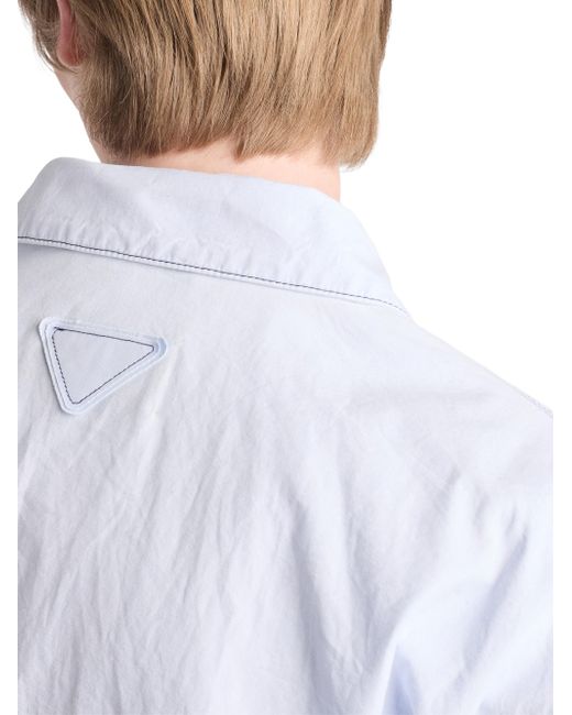 Bleached treatment Partially-lined garment Boxy fit Shirt collar Long sleeves, elasticized cuffs Zipper closure on the front Welt pockets Center-back length: 66 cm, Size: 48 Embroidered logo on the front Imported 100% Cotton. Lsd Rtw - Prada Rtw > Prada > Saks Fifth Avenue. Prada. Color: Blue. Size: 36.