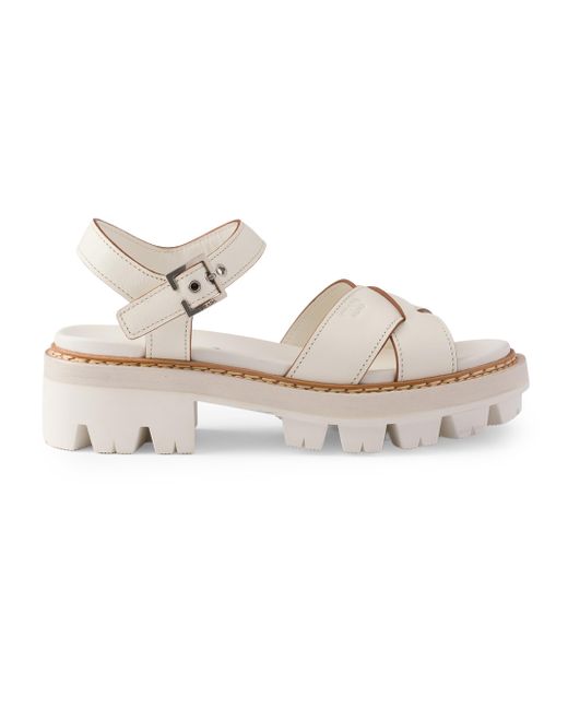 Upper with strap and logo-engraved metal buckle Monoblock rubber sole, 55mm / 2.2'', with hot-stamped logo Lug tread 100% Lamb Leather Imported. Lsd Rtw - Prada Rtw > Prada > Saks Fifth Avenue. Prada. Color: White. Size: 7.