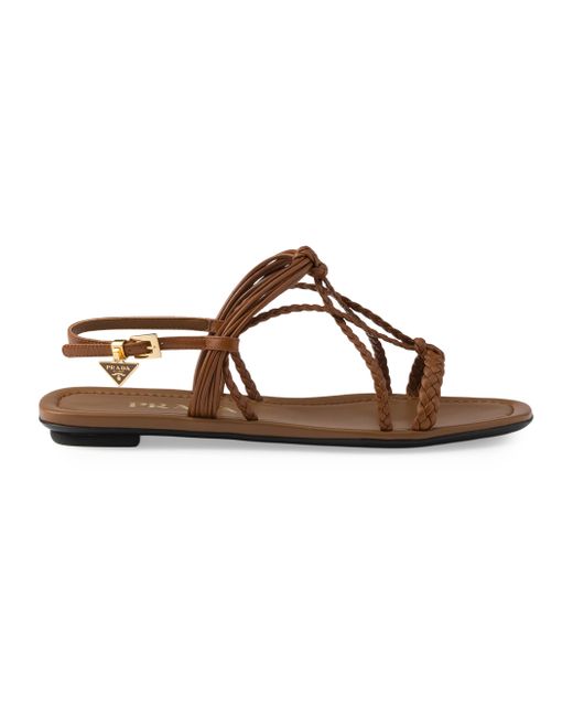 Upper with heel strap and metal buckle Enameled metal triangle logo Monoblock rubber and leather sole, 5 mm / 0.2, with hot-stamped logo 100% Capra Hircus Leather Imported. Lsd Rtw - Prada Rtw > Prada > Saks Fifth Avenue. Prada. Color: Brown. Size: 6.