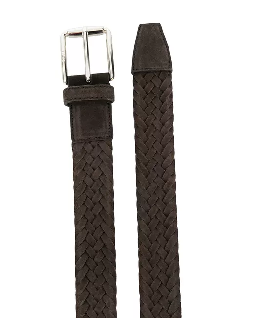 Cintura con motivo intrecciato in suede di colore marrone scuro di Tod's. Modello con fibbia color argento e vestibilità regolabile.