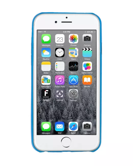 Royal blue and black calf leather Bag Bugs iPhone 6 case from Fendi featuring an internal logo stamp and a signature crystal eyed Bag Bugs motif.