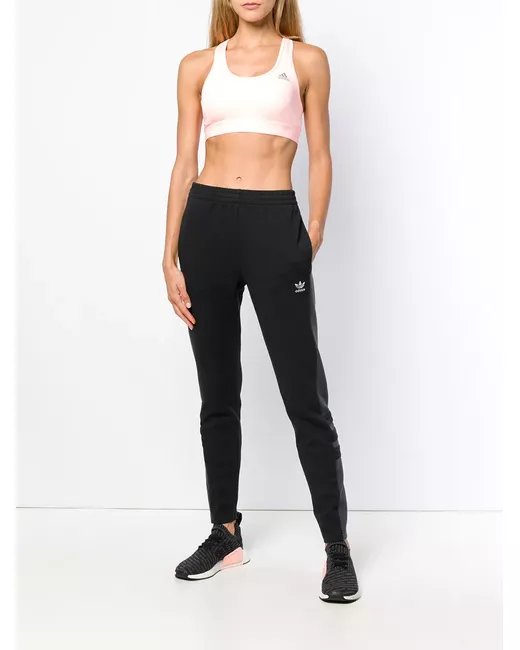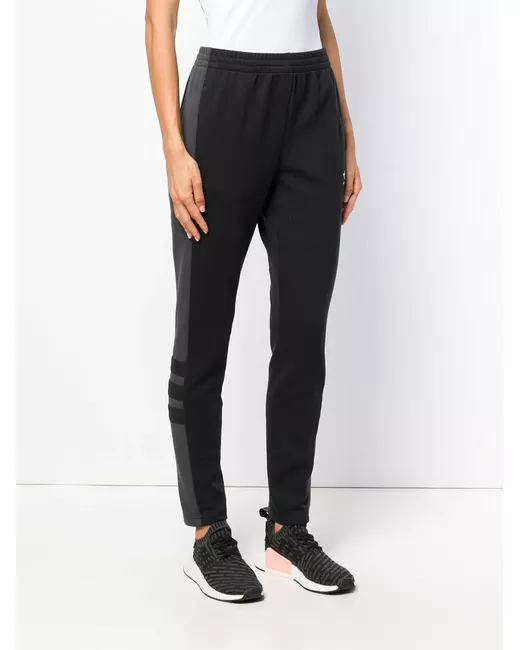 Sports are deeply rooted within the brand ideology at Adidas and continue to play a major role in the design and construction of the label’s contemporary products. These black and grey logo track pants are crafted from a cotton blend and feature a high rise, an elasticated waistband, an embroidered logo to the front, a panelled colour block design and a regular length.
