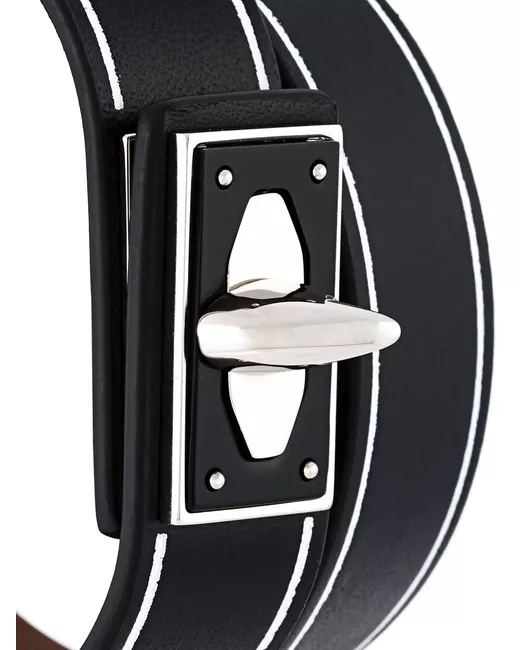 Black calf leather 'Shark Tooth' bracelet from Givenchy featuring a silver-tone twist lock fastening and a contrasting white trim.