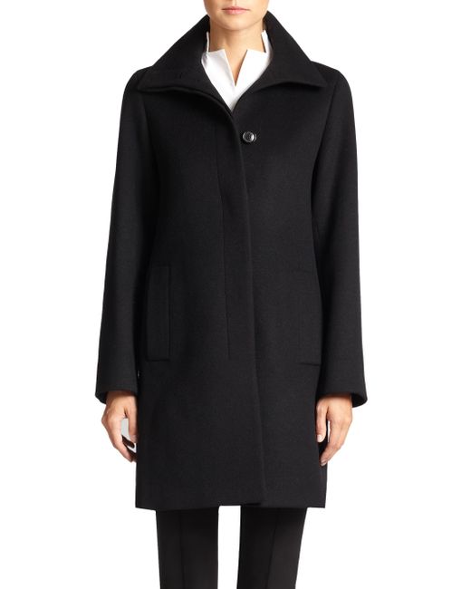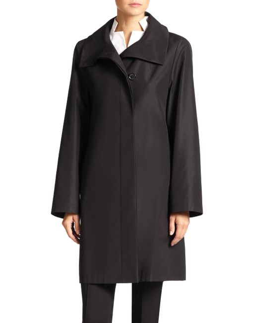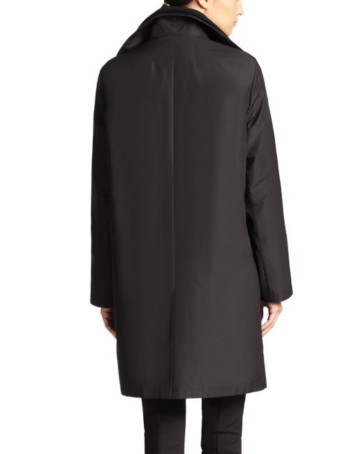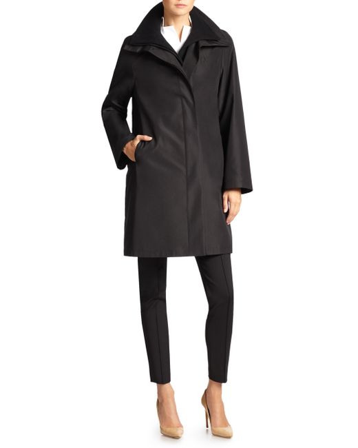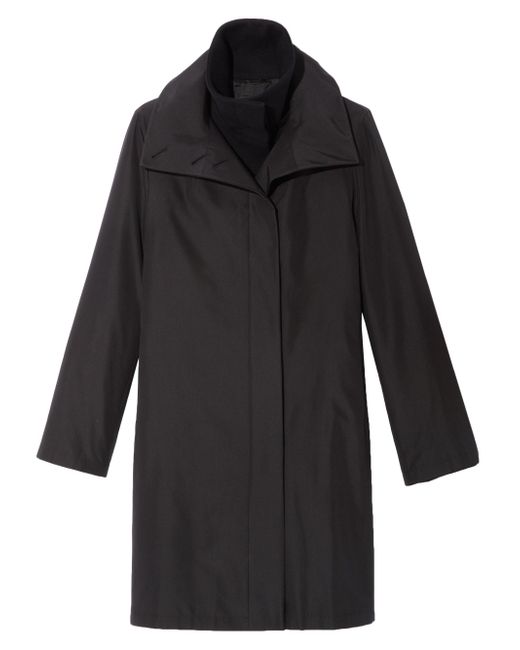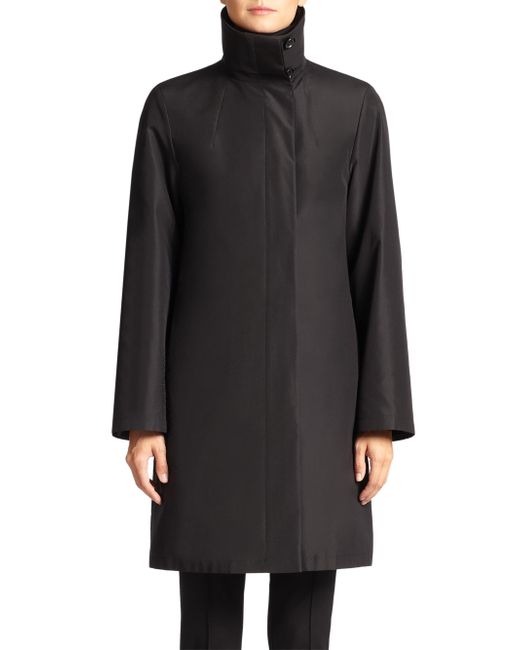 From the Architecture Collection Soft wool-blend topper and water-repellent silk shell Funnel collar with button closures Long sleeves Concealed button front Side slip pockets Back vent Lined About 30" from shoulder to hem Body: Wool/cashmere Shell: Silk Dry clean Imported Model shown is 5'10" (177cm) wearing US size 4. Designer Rtw - Akris. Akris. Color: Black. Size: 8.