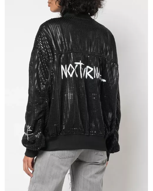 New York has a powerful allure, the beauty is in the struggle says Harif Guzman – the artist behind Haculla. From a street artist to a contemporary painter, Guzman began tagging the streets of New York in the early two-thousands. As seen in this black bomber jacket featuring a collarless design, long ribbed sleeves, a front zip fastening, a front buttoned flap pockets and a metallic print.