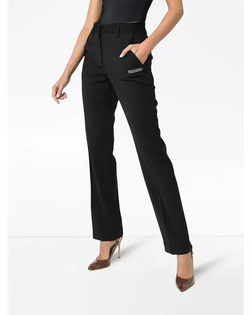 Virgin Abloh nicknamed his baby 'business casual'. For the new season of Off-White, the designer opted for a modern reinterpretation of work attire. Made from a virgin wool blend, these black high-waisted tailored trousers from Off-White feature belt loops, a concealed front fastening, side slit pockets, rear welt pockets, a contrasting brand print and a straight leg.