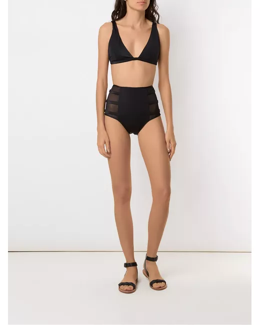 Black hot pants bikini set from Brigitte featuring a high rise, a sleeveless design, a sheer construction and a v-neck. Swimwear must be tried on over your own garments.