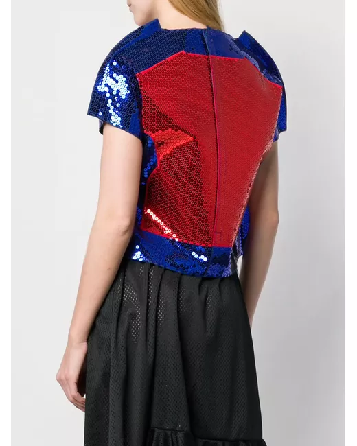 Roughly known as “anti-fashionistas”, CDG confronts contemporary notions of beauty, proposing a disruption through not only reinterpreted garments but a personal attitude altogether, as shown in this blue and red Two Dimension blouse. Featuring a round neck, an invisible back zip fastening, short sleeves, side slits, a straight hem and sequin embroidery. Condition: EXCELLENT. This previously owned item is in near-perfect condition with no signs of damage or use. Conscious: Purchasing this item continues its narrative and reduces the environmental impact of using new resources. You can be confident that you’re making a better choice for the Planet.