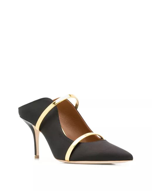 Confident designs infused with contrasting hues and experimental fabrics and fastenings are integral to Malone Souliers brand aesthetic. These black and gold-tone Maureen pumps are crafted from leather and feature a pointed toe, a branded insole, a mid high stiletto heel and two contrasting front straps.