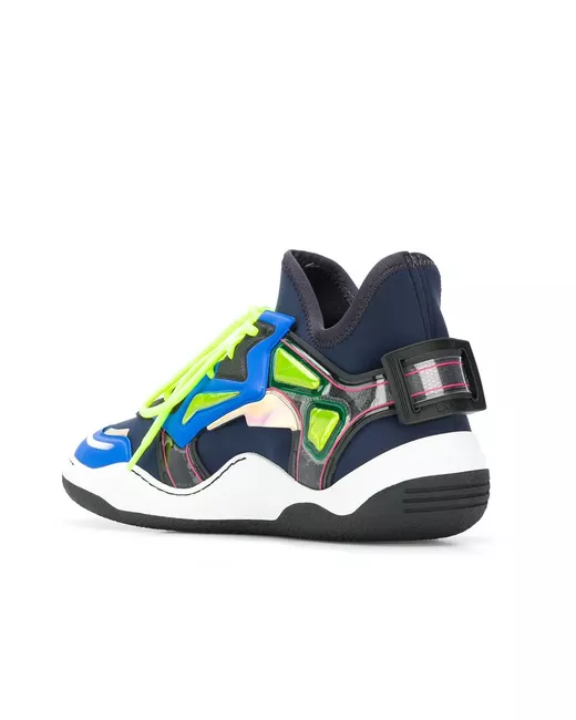 Lanvin introduces their impeccable craftsmanship and timeless design vision to sports-inspired silhouettes, presenting AW18 offerings that lend modern styling an athleisure finish. A strong style from Lanvin's new collection, these panelled sneakers combine avant-garde aesthetics with technical performance aspects, as you can see by the thermoplastic polyurethane components to the sides, leading to a rear buckle detail. The comfortable pair features an ankle length, a flat black rubber sole, a round toe, a red lace-up front fastening, padded insole and a stretch fit.