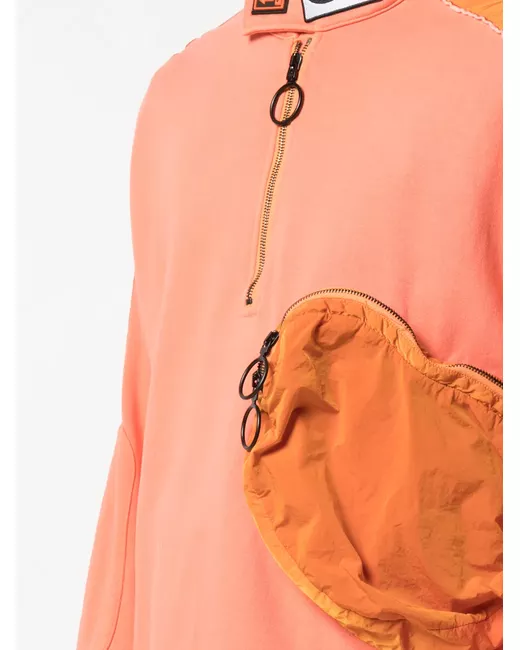 Look to Off-White for distinctive, street-worthy outfits. Crafted from orange cotton, this sweatshirt presents tonal contrasting panels, as well as multiples logo patches along its turtle neck. Get noticed! Featuring a turtle neck, a front logo patch, a front zip fastening, contrasting panels, long sleeves, a front zip pocket, zip cuffs and a boxy fit.