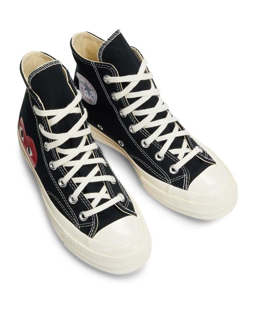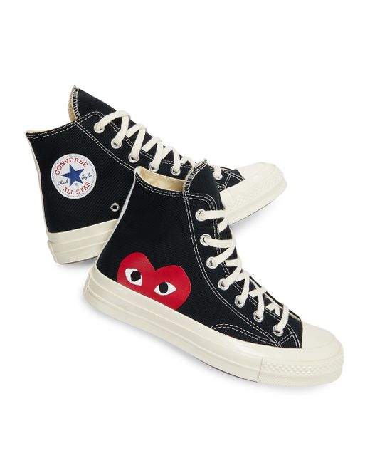 Iconic heart logos adorn these minimalist sneakers. Cotton upper Round toe Lace-up vamp Cotton lining Rubber sole Imported SIZE Platform, 1.5" (40mm). Women's Shoes - Designer Womens Shoes > Saks Fifth Avenue > Barneys. Comme des Garcons Play. Color: Khaki. Size: 5 US Women's/ 3 US Men's.