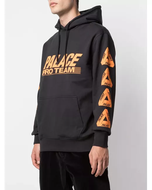 Black and orange cotton logo print drawstring hoodie from Palace featuring a drawstring hood, long sleeves, a ribbed hem and cuffs, a graphic print and a kangaroo pocket. Supplied by a premier sneaker marketplace dealing with unworn, already sold out, in demand rarities. Each product is rigorously inspected by experienced experts guaranteeing authenticity..
