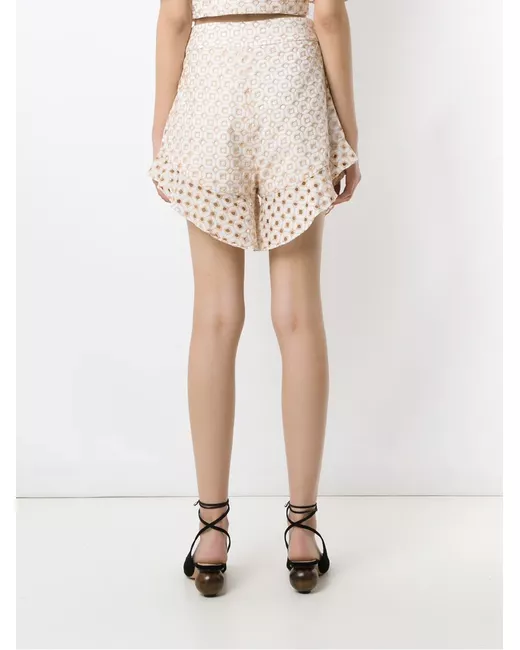 Beige Orchid patterned shorts from Olympiah featuring a high waist, side pockets, a textured style, a short length and a slim fit.