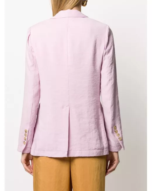 Rose pink double breasted blazer from Forte Forte featuring notched lapels, front flap pockets and long sleeves.