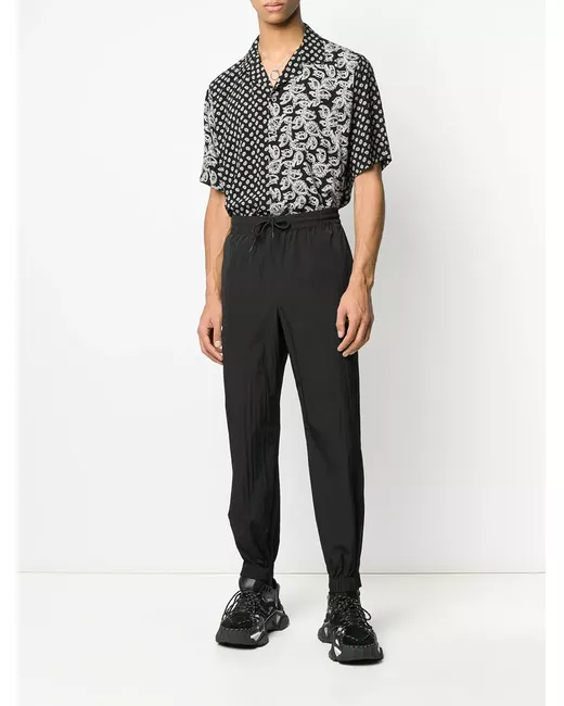 Black neon logo track pants from MSGM featuring an elasticated drawstring waist, a back zip pocket, a straight leg, elasticated cuffs and ankle zips.