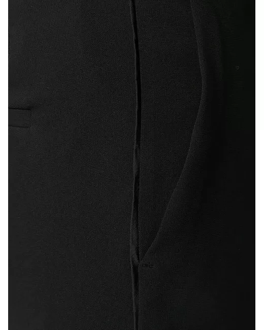 Black linen blend cropped bootcut trousers from Alberto Biani featuring a high rise, a waistband with belt loops, a concealed front fastening, side slit pockets, rear welt pockets, creases and a contrast satin piped trim.
