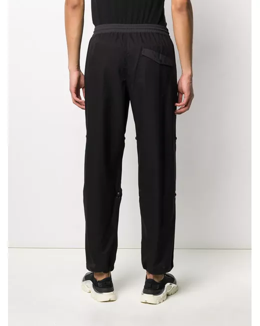Black drawstring track pants from Maharishi featuring an elasticated drawstring waist, side pockets, a back pocket and a regular length.
