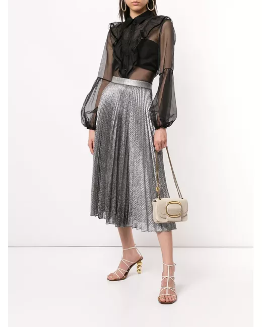 Black silk organza Love Bird sheer blouse from MacGraw featuring a sheer construction, a ruffled design, a classic collar, a button fastening and long sleeves.