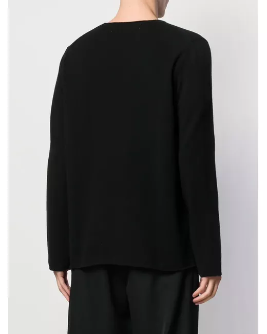 black cotton fine knit logo patch at the chest crew neck long sleeves straight hem