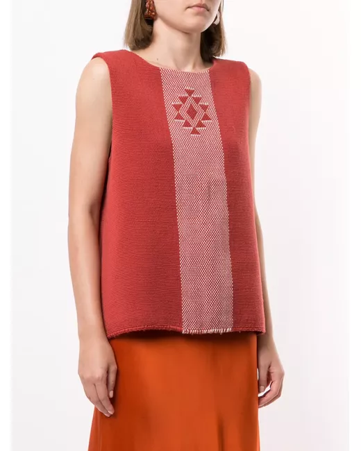 brick/charcoal merino knitted construction geometric-pattern print round neck sleeveless