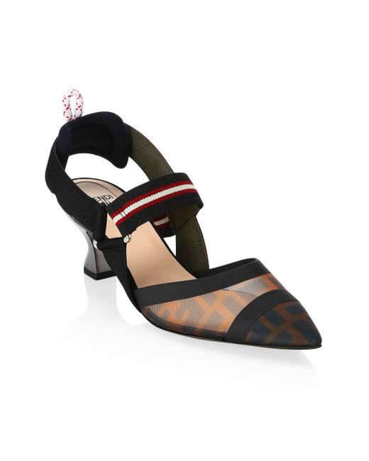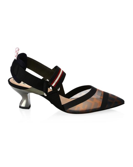 Colibri Mesh Slingback Pumps Logo Slngbk Pump. Fendi. Color: Black Mult. Size: 41.