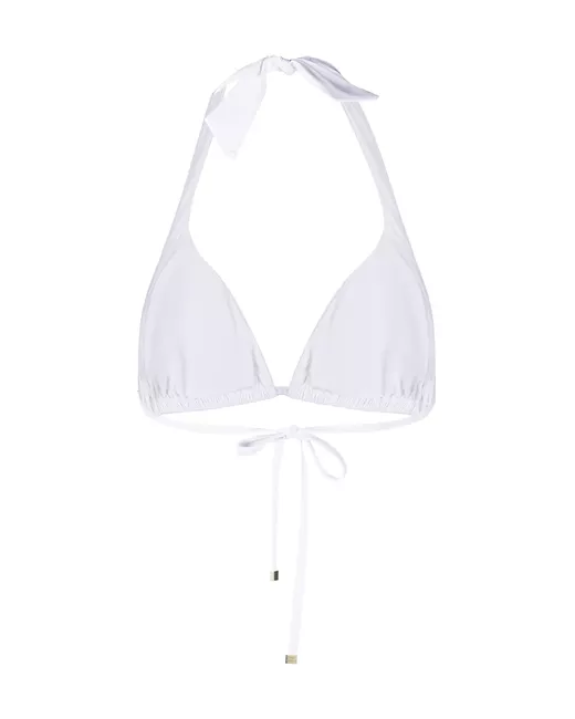 white metal tips tie-fastening straps triangle cup Be mindful to try on swimwear over your own garments.