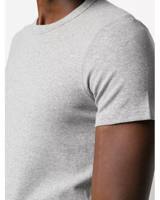 grey stretch cotton crew neck short sleeves logo patch to the side straight hem