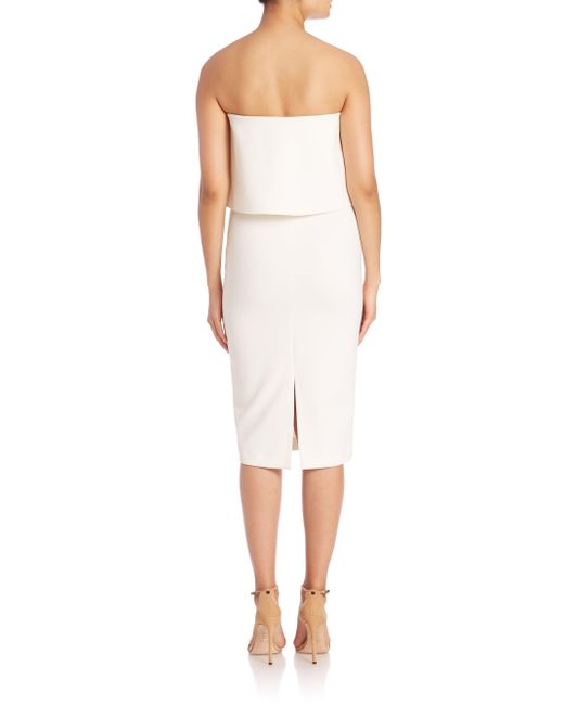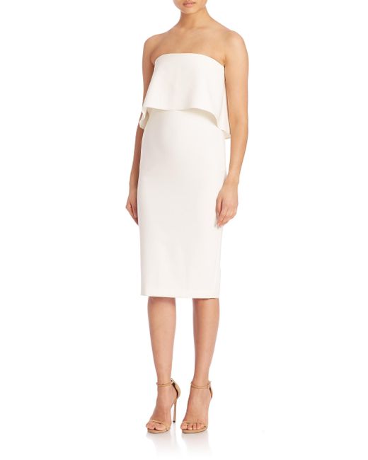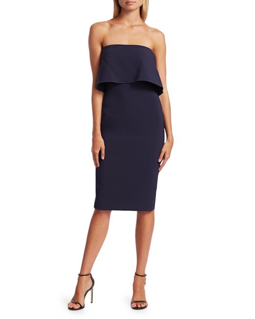 Silhouette-hugging dress styled with flounce a bodice for an elegant-yet-flirty look. Strapless neckline Sleeveless Side zip closure Vented hem Polyester/rayon/spandex Dry clean Imported SIZE & FIT Bodycon fit About 37" from shoulder to hem Model shown is 5'10" (177cm) wearing US size 4. Dress Collections - Contemporary Evening > Saks Fifth Avenue > Barneys. Likely. Color: Black. Size: 6.