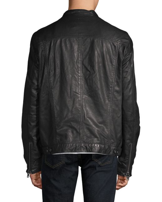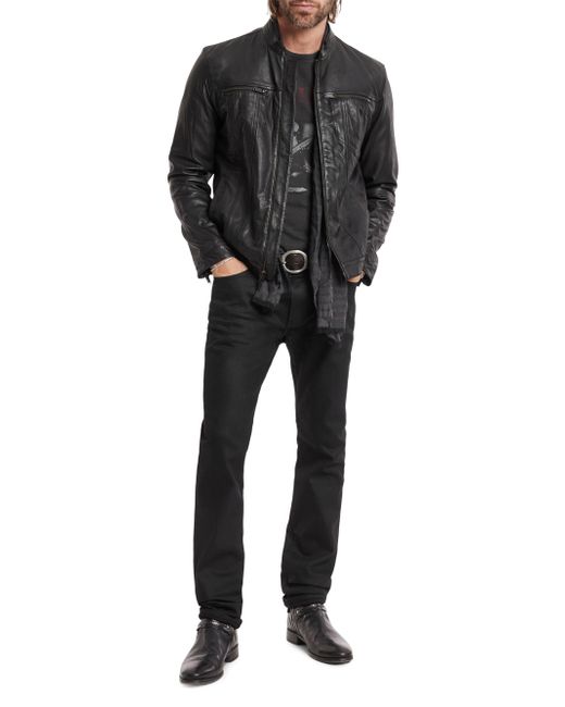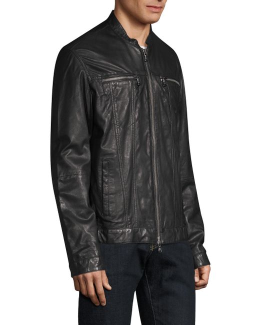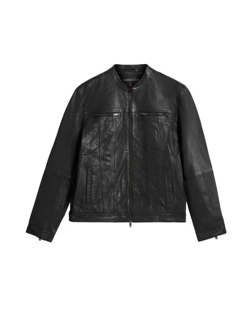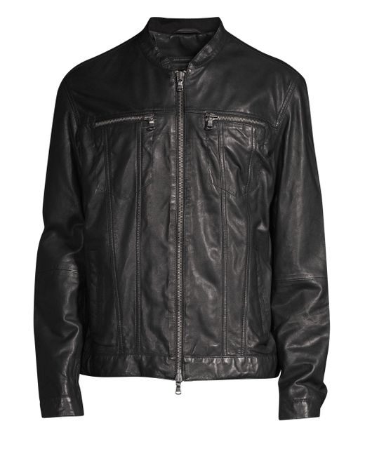 Rich buttery leather shapes a classic front-zip layer for a rebellious look Mock collar Long sleeves zip-accented cuffs Breast zip pockets Side slash pockets Inside zip pocket Lined About 24" from shoulder to hem Leather Dry clean by leather specialist Imported. Men Adv Contemp - Contemporary Tops > Saks Fifth Avenue > Barneys. John Varvatos Star U.S.A. Color: Black. Size: XXL.