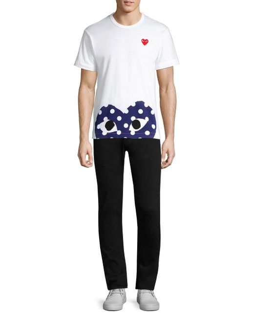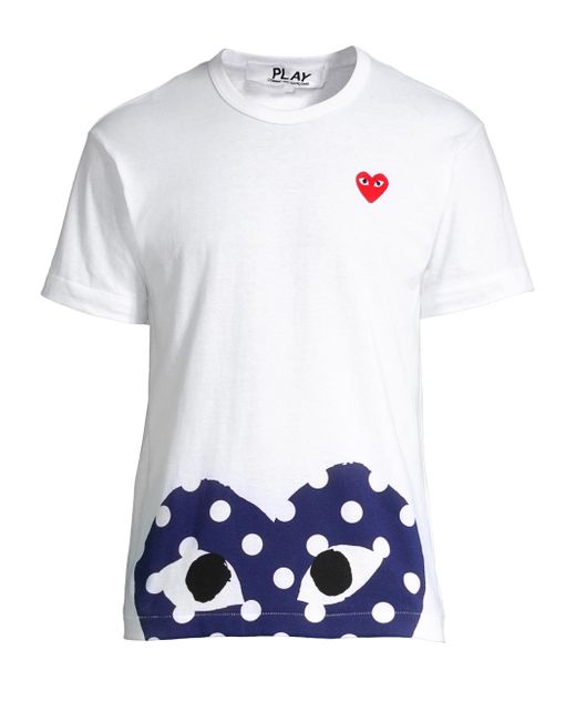 Polka dot version of the label's signature heart-and-eyes graphic on cotton tee. Crewneck Short sleeves Pullover style Cotton Hand wash, do not dry clean Imported SIZE & FIT About 27" from shoulder to hem ABOUT THE BRAND From the artistic mind of Comme des Garçons designer Rei Kawakubo comes a casual, playful line for women, men and kids. The signature red heart, complete with instantly recognizable wide eyes, is emblazoned on striped and solid T-shirts, knitwear and sneakers. Men Adv Contemp - Advanced Contemp Collect > Saks Fifth Avenue > Barneys. Comme des Garcons Play. Color: White. Size: Medium.